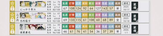 へし切り長谷部¦大般若長光¦篭手切江¦安宅切